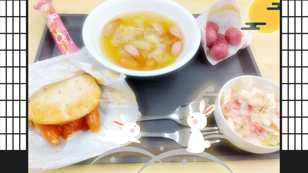 そして、コンフォートスペース澄川の調理員さん手作りシーザーサラダとウィンナーたっぷりなコンソメスープを添えてお昼ご飯をご提供♪